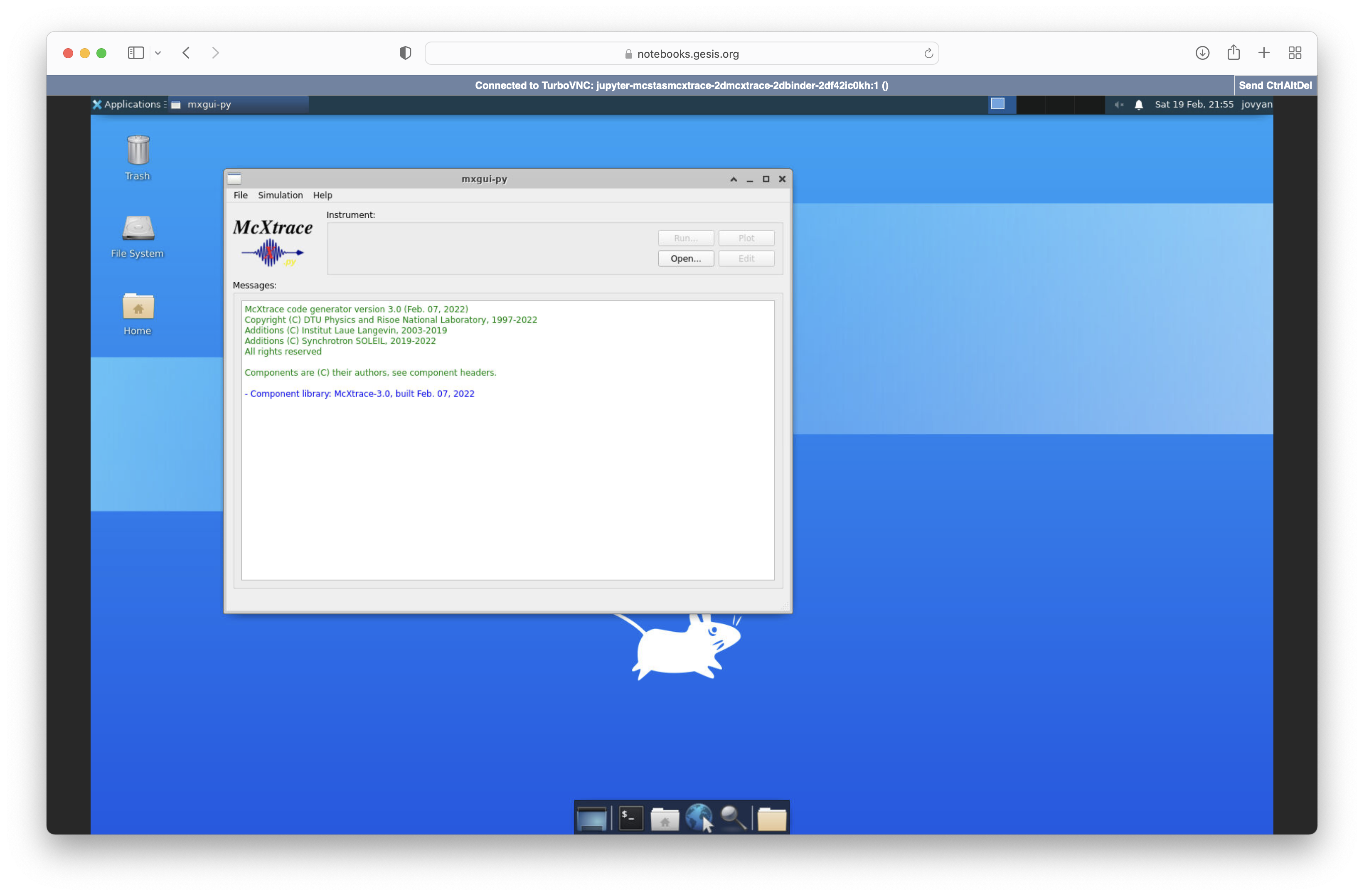 New stable releases of McXtrace should be released during November/December this year. Best and sorry for the inconvenience, Peter Willendrup New ready-to-run McXtrace box in a browser[18/02/2022] Dear all, we are happy to provide a ready-to-run system with McXtrace pre-installed. It typically pulls-out an 8-cores computer running at Binder, for free, with both McXtrace 1.7 and 3.0 (with MPI multi-core support but no GPU). Perfect for running McXtrace from anywhere, for training/schools/workshops. Start it in a single click here: (Please note that load-time can be a couple of minutes.) Update:The above docker image has been pushed to dockerhub and can also be run locally at your machine using docker: